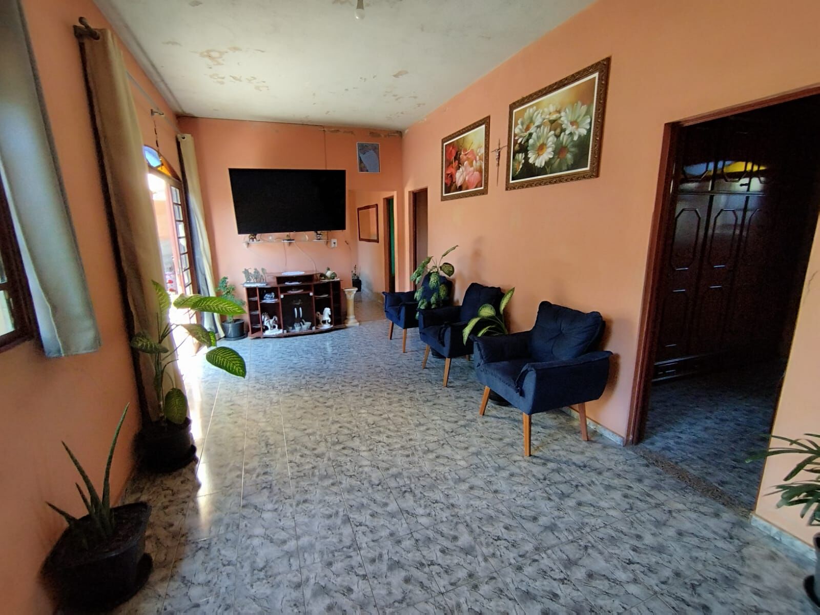 Casa com tres quartos, um banheiros, uma sala, uma cozinha, uma copa e uma area de tanque.