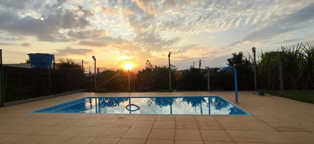 Casa com 2 dormitórios, sendo 1 suíte, possui 3 banheiros, 5 vagas de garagem, 1 sala, piscina, galinheiro, pomar, sauna, área Gourmet com churrasqueira fogão a lenha já com serpentina para o chuveiro, Armarios planejados nos quartos banheiro, cozinha e ainda conta com uma super banheira de hidromagem tudo isso para seu maior confornto localizada em condomínio com porteiro 24 horas trazendo assim a sua maior segurança. Venha conhecer essa super oportunidade de compra com um lindo por do sol só para você !